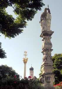 Der Marktplatz in Straubing liegt da in seinem vollen Glanz in der Nachmittagssonne. Wir machen Rast. Die letzte Etappe des Tages legen wir auf dem Labertal-Radweg zurück. Die Laber sieht man zwar selten, der Weg zieht ruhig zwischen Bauernfeldern dahin. Da Geiselhöring, wo wir ein Zimmer suchen wollen, auf der anderen Seite der Laber liegt, verlassen wir den Radweg und fahren über kleine Feldwege, die über die Brücke und in den Ort führen. |