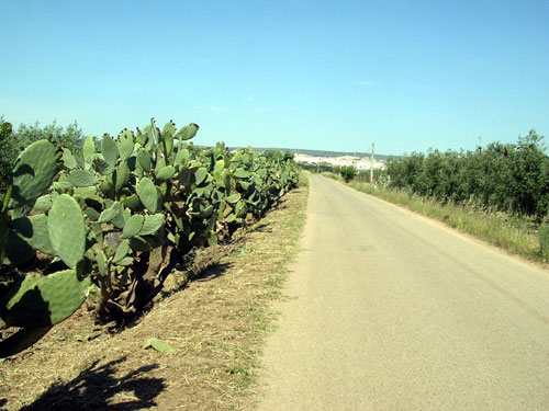 May 16, 2006 Matera - Massafra, 65 km On the way to Castellaneta, the first town on today's route, the country we ride through is pleasant, neither boring nor spectacular, and there is little traffic. Castellaneta is the birthplace of Rudolph Valentino. "The Sheik" (released in 1921) was the movie that catapulted Rodolfo to stardom, and depicted in this role he is commemorated in his hometown. Otherwise Castellaneta is a quiet town with a supermarket which we welcome for providing us with supplies for a picnic and a shady piazza where we can enjoy our meal.