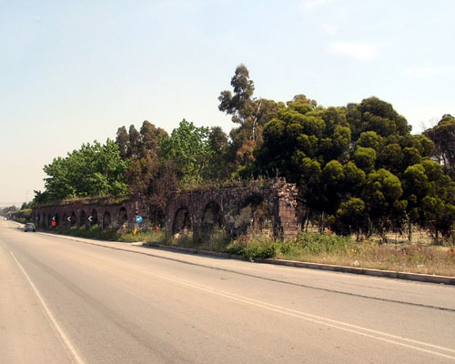 Entering the city of Taranto is easy. I tend to worry about the approach to larger cities, this time unnecessarily so. As the traffic and ratio of trucks to cars increases, we have a wide shoulder to ride on, past the smoking chimneys of industry on the one side and the remains of a Roman viaduct on the other, a strange contrast. |