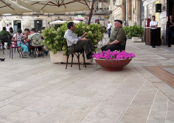 As in all of southern Italy, the piazzas and their cafés in the evening are a favorite place for having an ice cream, a glass of wine, talking politics or just being there. |