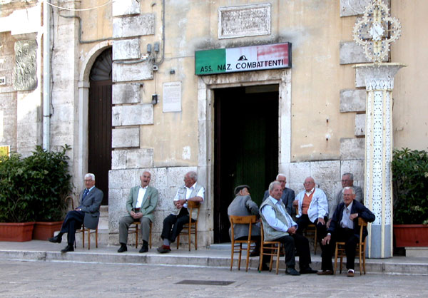 Street scene in Conversano - war veterans passing the time of day |