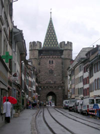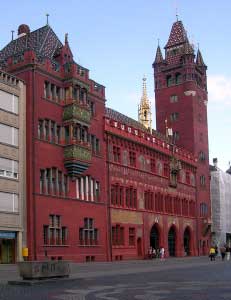 | In diesem Zustand fahren wir nicht nach Basel, um wie verabredet unseren Freund Hans und Familie zu besuchen. Wir nehmen kurz entschlossen ein Zimmer in Rheinfelden und telefonieren mit unseren Freunden, dass wir am Nachmittag mit dem Zug nach Basel kommen. Bevor wir uns mit unseren Freunden treffen, haben wir etwas Zeit in Basel herumzuschauen. Sogar unter dem grauen Himmel strahlt das Rathaus am Marktplatz. Als wir am späten Abend von unseren Freunden Abschied nehmen, regnet es wieder. Wir fahren mit dem Zug nach Rheinfelden zurück und nehmen einen Taxi vom Bahnhof zu unserem Hotel. Es war ein langer Tag. |