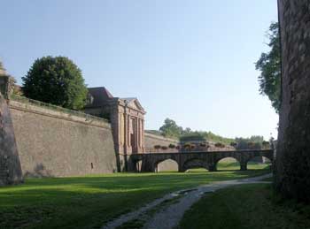 Das Wetter heute: anfangs kühl, dunkle Wolken, später aufhellend, immer Gegenwind. Am Abend sind wir in Neuf-Brisach. Die Stadt ist Anfang des 18. Jahrhunderts als Zitadelle in Form eines achteckigen Sterns gebaut und heute noch mit Wällen, Gräben und Kasematten gut erhalten. |
