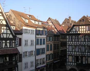 Heute sonnig aber mit kühlem Gegenwind, der erst kurz vor Straßburg nachlässt. Wir fahren durch elsässische Dörfer, nicht alle sind schön, aber auffallend ist die Blumenpracht, wo du nur schaust - in Kübeln neben der Straße, in Ampeln an den Straßenlampen, vor den Häusern, an allen öffentlichen Plätzen. Manche Häuser ertrinken geradezu in den Blütenfluten. Dazu kommen die bunt angemalten Fachwerkhäuser, oft schön saniert, in allen Farben des Regenbogens - rot, orange, gelb, grün, blau, violet. Die Farbenfreude als Ausgleich für die Eintönigkeit der unendlichen Maisfelder um die Dörfer herum. |