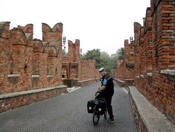 Ich finde das Radfahren im Verkehr von Verona anstrengend. Wir finden alles, was wir suchen, aber mit manchen Umwegen und etwas Stress. Die sehr vielen einbahnstraßen machen die Lage noch schwieriger. Vor allem haben wir Ehrfurcht vor den städtischen Bussen gelernt. Sie scheinen Radfahrer einfach nicht wahrzunehmen. Wir haben noch lange nicht alles gesehen, was die Stadt zu bieten hat, aber wir wollen auch ein bisschen radfahren. |