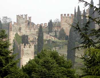 Verona – Soave, 52 km Wir absolvieren einen umfangreichreichen Kulturvormittag, bevor wir Verona verlassen. Zuerst besuchen wir San Bernadino, besonders sehenswert ist die Bibliothek (Sala Morone) mit schönen Fresken, dann San Zeno, wir fahren am Fluss entlang zum Castelvecchio mit der eindrucksvollen Brücke, schauen San Lornezo, dann il Duomo und zum Schluss Sant’Anastasia an. |