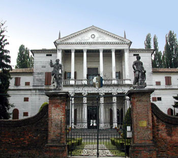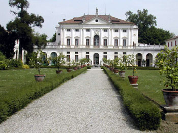 In Piombino Dese kann man von über die Straße, ziemlich mitten im verkehrsreichen Zentrum, die Villa Cornaro Gable von Palladio anschauen. Ein Besuch des Inneren ist nach unseren Auskünften unbedingt empfehlenswert, aber leider nur möglich am Samstag Nachmittag. Da müssen wir uns mit der Außenansicht begnügen. |